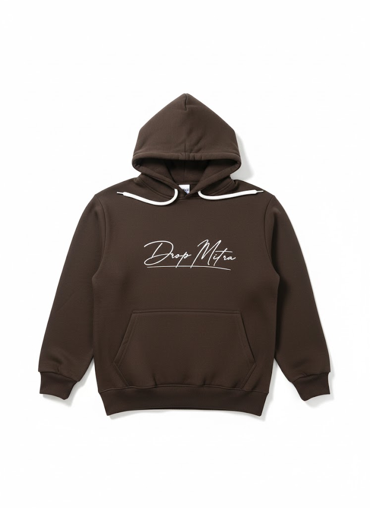 Step into effortless style and unmatched comfort with the Drop Mitra Hoodie. Designed for those who appreciate minimal aesthetics with a bold statement, this hoodie features a sleek black finish paired with the signature Drop Mitra logo in elegant white script across the chest. Crafted from premium, soft-touch fabric, it ensures warmth and breathability for everyday wear. The adjustable drawstring hood adds a casual yet functional touch, while the spacious kangaroo pocket keeps your hands cozy and essentials close.